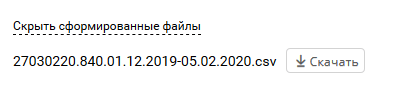 - To download the registry as a CSV file, the registry must be generated. To do this, click Update Status. Once the registry is generated, its status will change to Formed and the Show generated files link will appear at the bottom.: