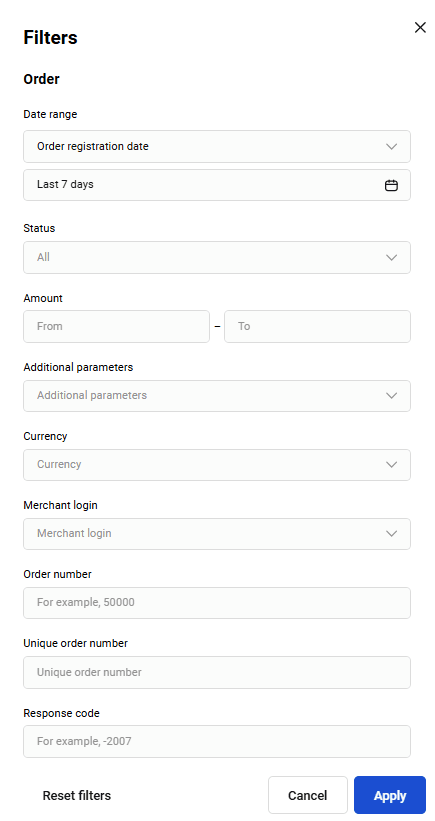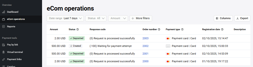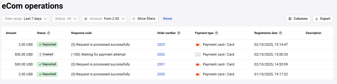 | Order number | Order number in the merchant system |