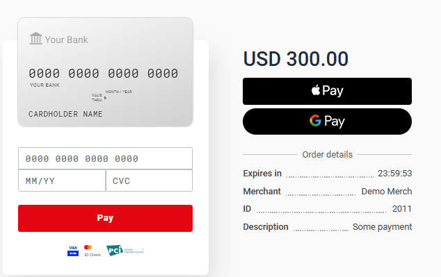 This page contains a constructor that allows you to generate the code of Payment Widget script that is used for quick connection of Apple Pay and Google Pay buttons directly on the merchant's store page. Read more here.