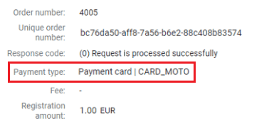 | Authorization code | Payment authorization code |