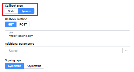 If the Merchant has already configured the callback type as Dynamic, both options in the Signing Type field will not be available for selection, they will be non-clickable.