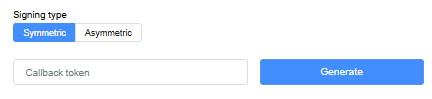 If the Symmetric signing type is selected, it is possible to generate a callback token. Also, if you select the Symmetric signing type, manual token entry is available.