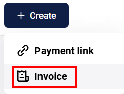 - Go to Pay by link section of the Personal Area. You also may open this section by clicking Create at the top of Personal area and select Invoice.