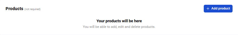 When generating an invoice, you can add a shopping cart for the order. The Products section is located below the area for creating a link to payment page: