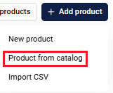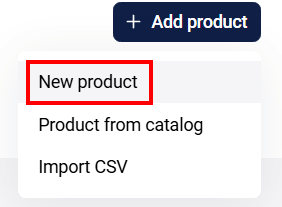 To add a product to the shopping cart, click on the Add product button and select New product.