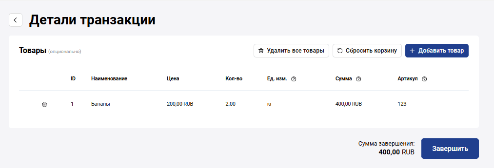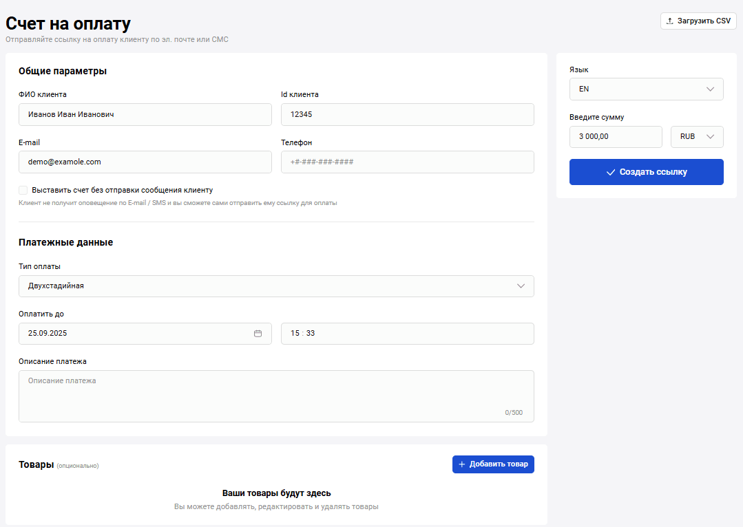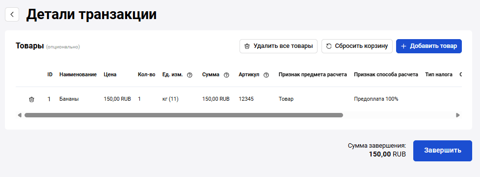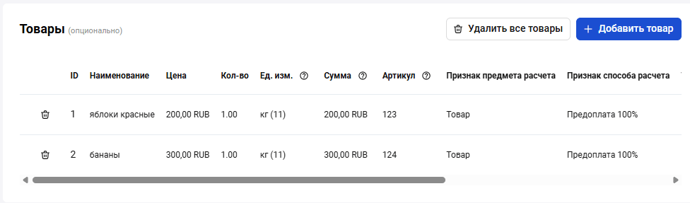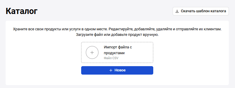 После загрузки каталога товаров или товара/ов отдельно вы сможете добавлять товары из каталога при выставлении счета на оплату. Подробнее о том, как добавлять товары из каталога, смотрите в разделе Счет на оплату.