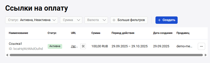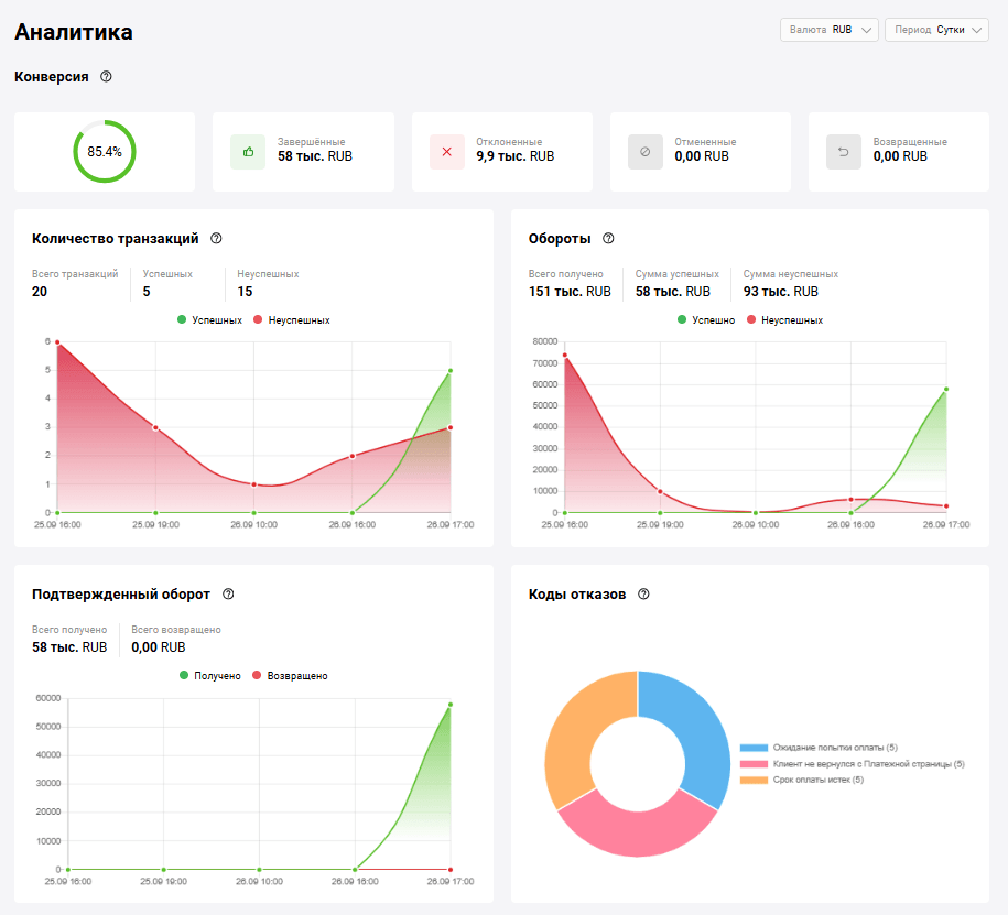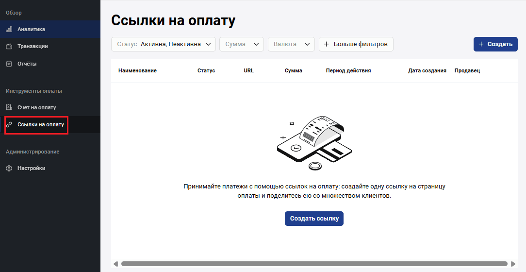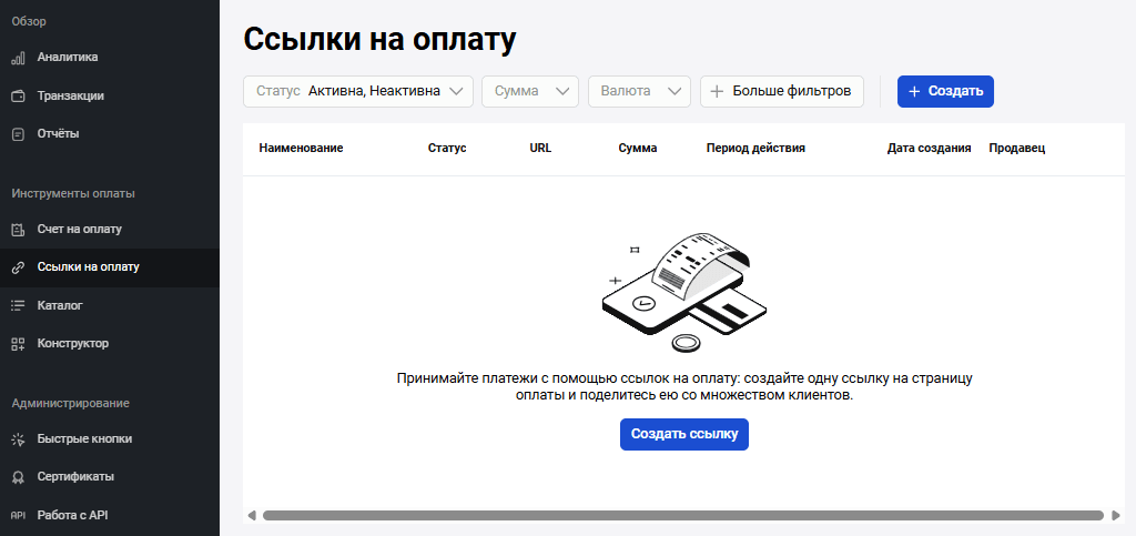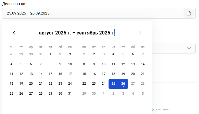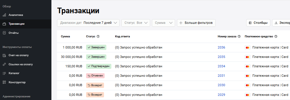 | Сумма транзакций без комиссии | Общая сумма транзакций без комиссии за указанный период |