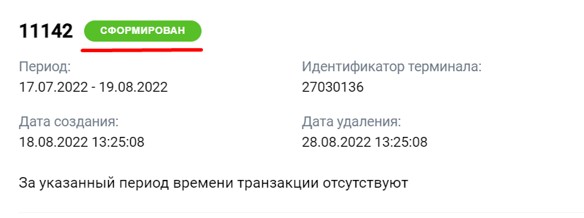 | За период | Период, за который формировался реестр транзакций в формате с дд.мм.гггд до дд.мм.гггг. |