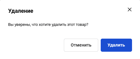 При нажатии кнопки удаления товара откроется окно для подтверждения или отмены действия: