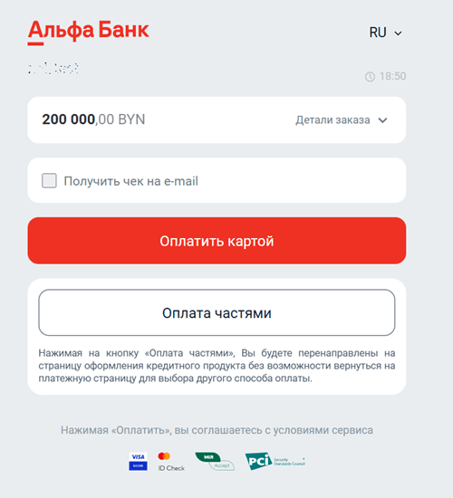 | Наименование банка | Поле всегда принимает значение "Альфа-банк" |