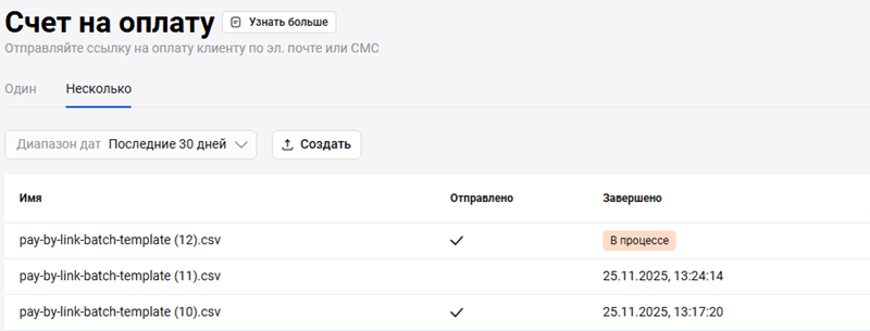 - Чтобы загрузить реестр в виде CSV-файла, реестр должен быть сформирован. Для этого нажмите Обновить статус. Как только реестр будет сформирован, его статус изменится на Сформирован, а внизу отобразится ссылка Показать сформированные файлы: