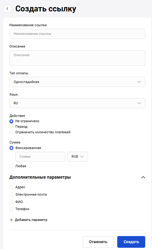 - Сумма (обязательно),