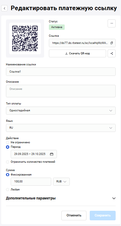 Дополнительные параметры