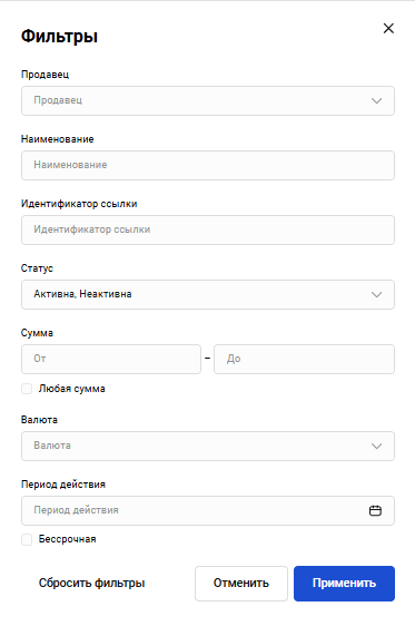 Если у пользователя есть аффилированные продавцы, выбор продавца становится доступным в выпадающем меню Продавец.