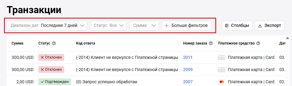 | Сумма транзакций | Общая сумма транзакций за указанный период |