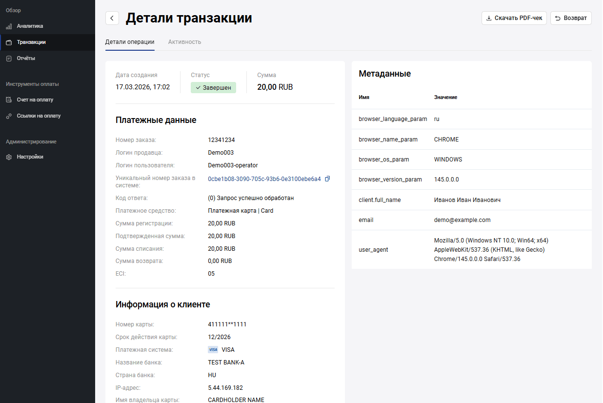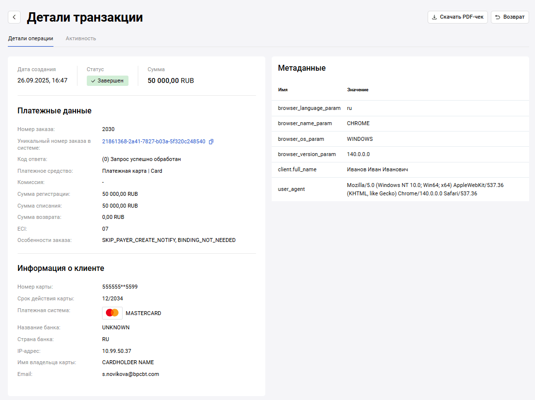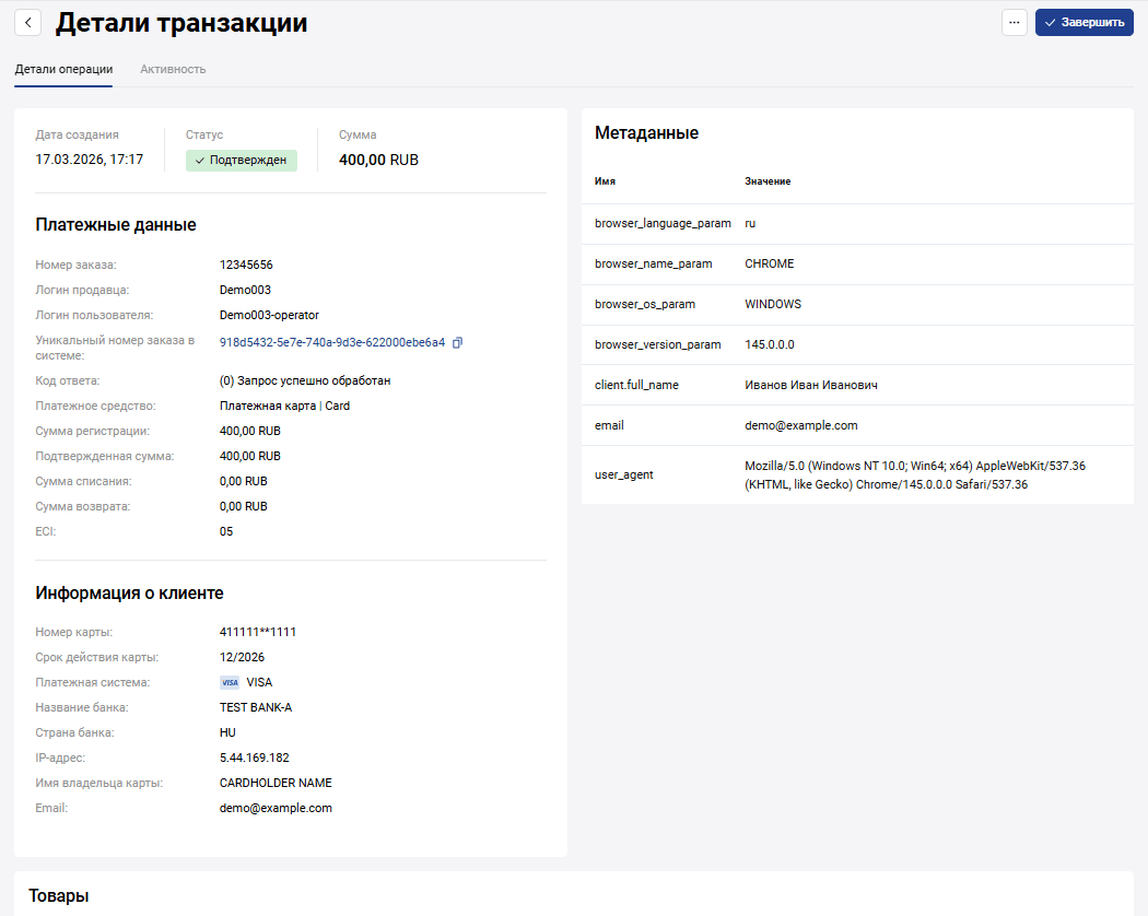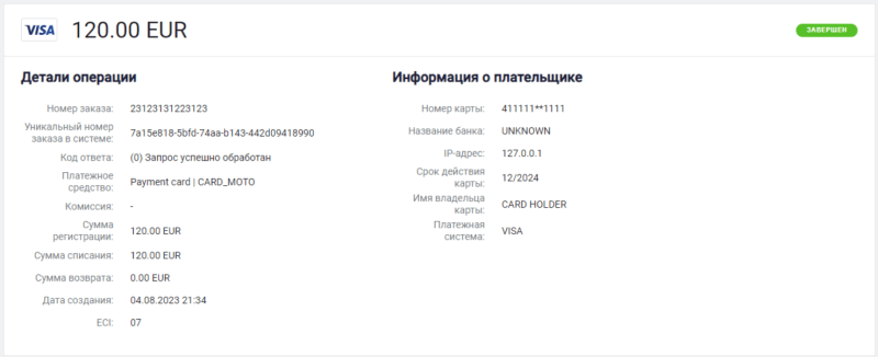 | RRN | Уникальный идентификатор транзакции в процессинге |