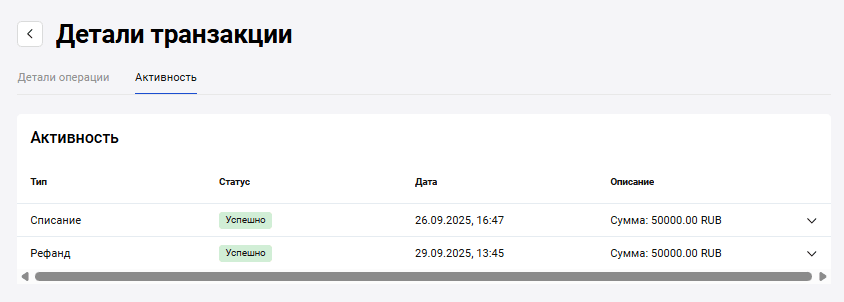 На странице отобразятся сведения о транзакциях: