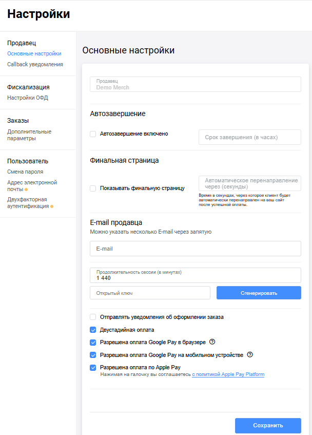 Дополнительная информация об уведомлениях обратного вызова доступна здесь. Вкладка Callback-уведомления доступна здесь: Настройки → Продавец → Callback-уведомления.