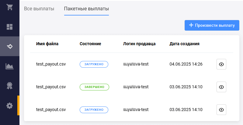 Файл отобразится в списке на вкладке Пакетные выплаты. Нажмите значок