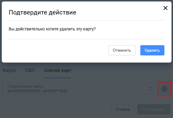 О том, как сохранять и удалять карты в этом списке, см. в разделе Связки получателя.