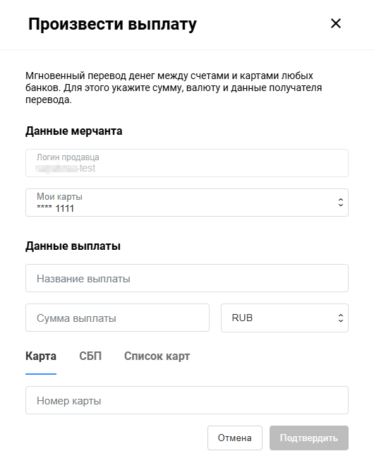Возможность проводить Выплаты подключается по запросу в службу поддержки.